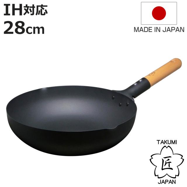 鉄フライパン 炒め鍋 28cm IH対応 鉄製 匠 マグマプレート 日本製 ( ガス火対応 フライパン 鉄製フライパン 深型フライパン 片手鍋 28センチ 木柄 鉄鍋 鉄なべ 深型 調理器具 おしゃれ )