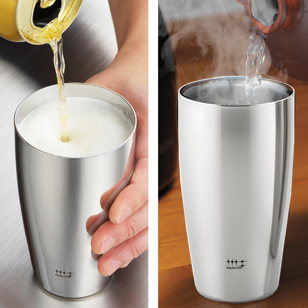 ●冷たいものを注いでも水滴がつきにくく、熱も伝わりにくい2重構造です。