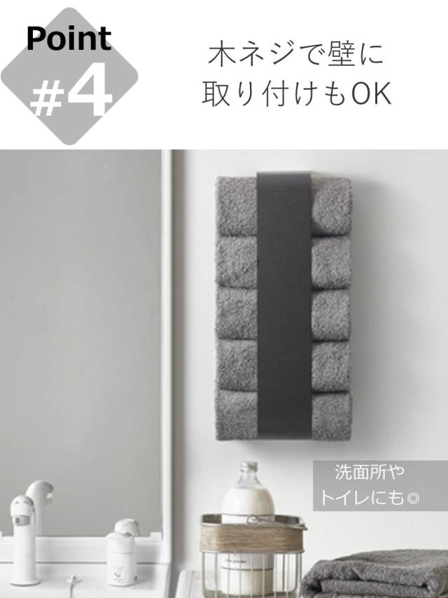 洗面所やトイレのハンドタオルストッカーとしても大活躍します。付属の木ネジで壁面に簡単に取り付けることが可能です。