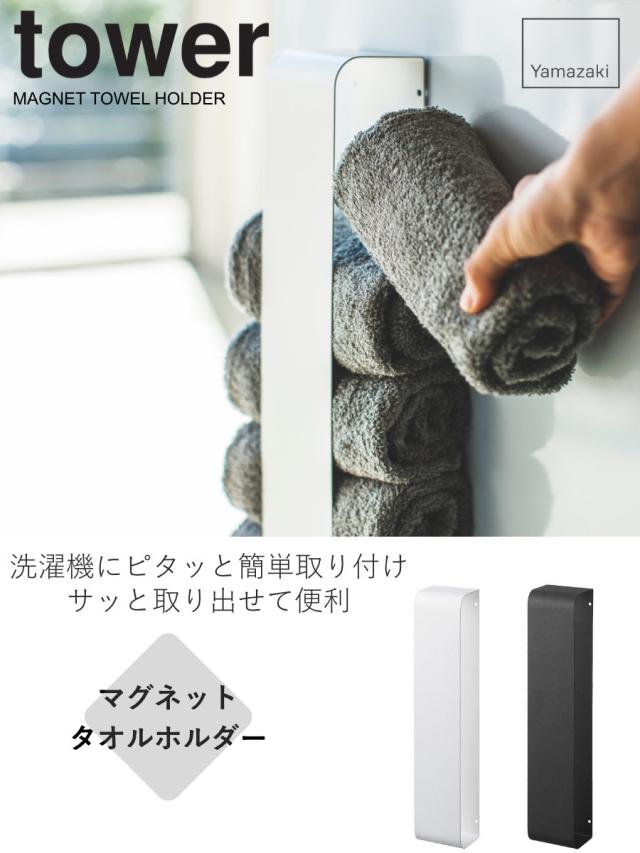 山崎実業 tower マグネットタオルホルダー タワー ( 4903208036177 タワーシリーズ タオルホルダー 収納 ランドリー マグネット 洗濯機 洗濯機横 洗濯機前面 磁石 洗面所 壁面 壁 冷蔵庫 木ネジ タオル )