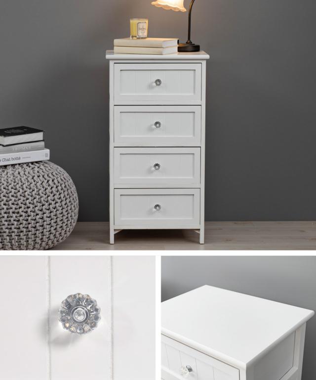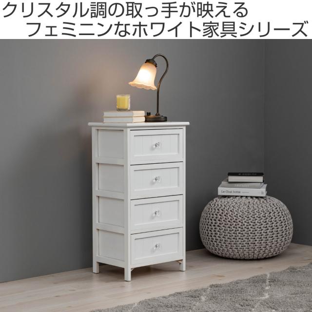 ウッドチェスト 4段 シャビー調 クリスタル調取っ手 幅41cm ( 完成品 ランドリーチェスト 引出し タンス 衣類収納 引き出し 整理タンス 収納 たんす 整理たんす 洋タンス 箪笥 カラーチェスト サイドチェスト チェスト )