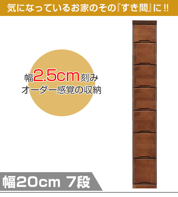 スリムチェスト 7段 すき間収納 引き出し 木製 幅20cm ( タンス チェスト ランドリーチェスト 整理タンス 完成品 収納 隙間 すきま 引出し 整理 衣類収納 )