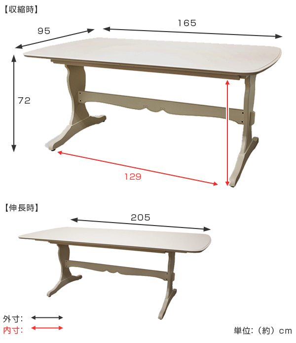ダイニングテーブル 木製 エクステンション クラシック調 フルール 幅165〜205cm ( テーブル 食卓 机 伸縮テーブル 開梱設置 開梱設置無料 天然木 4人用 四人用 6人用 六人用 伸縮式 長方形 お洒落 おしゃれ )