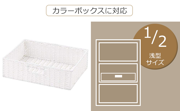 文具のストック書類の整理、タオルの収納に便利な1/2浅型サイズです。
