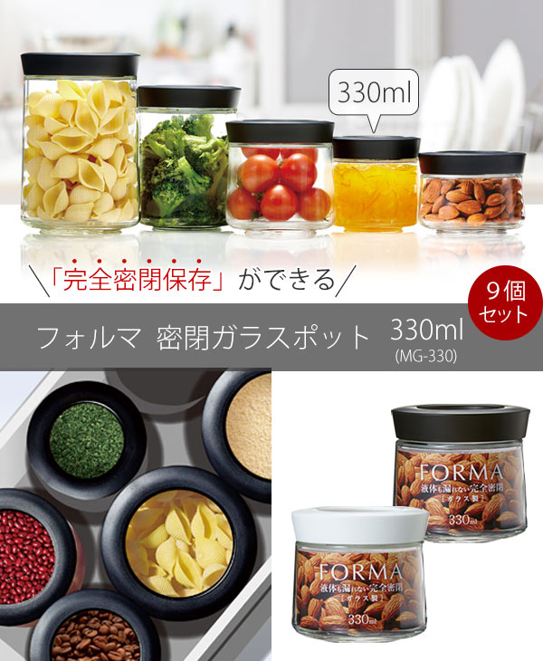 保存容器 フォルマ 密閉ガラスポット 330ml ガラス製 MG-330 9個セット ( 密閉容器 ガラス容器 保存瓶 ガラス製保存容器 ガラス保存容器 ガラスポット 保存びん 食品保存容器 フードストッカー 硝子容器 キャニスター )