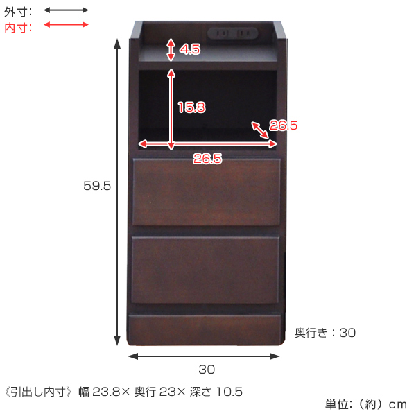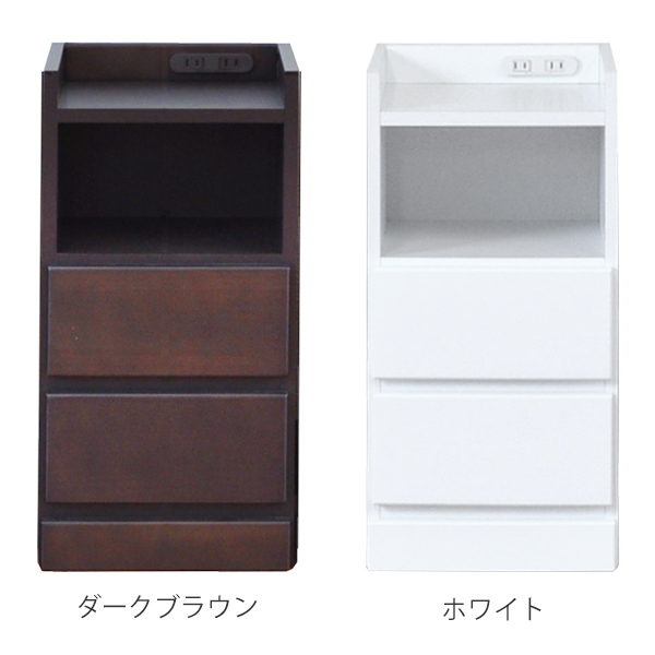 すき間収納 サイドチェスト 3段 木製 コンセント付 30cm ( ナイトテーブル サイドテーブル テーブル チェスト ローチェスト 完成品 日本製 国産 木製 収納 リビング収納 電話台 FAX台 小物収納 白 茶 引出し 引き出し )