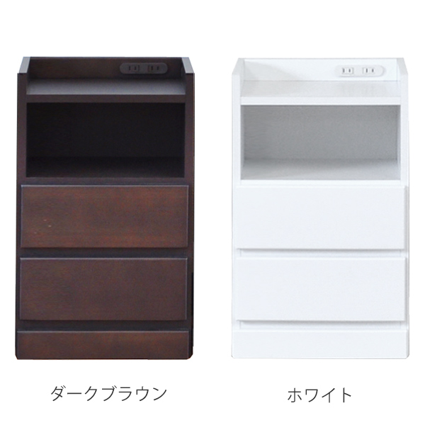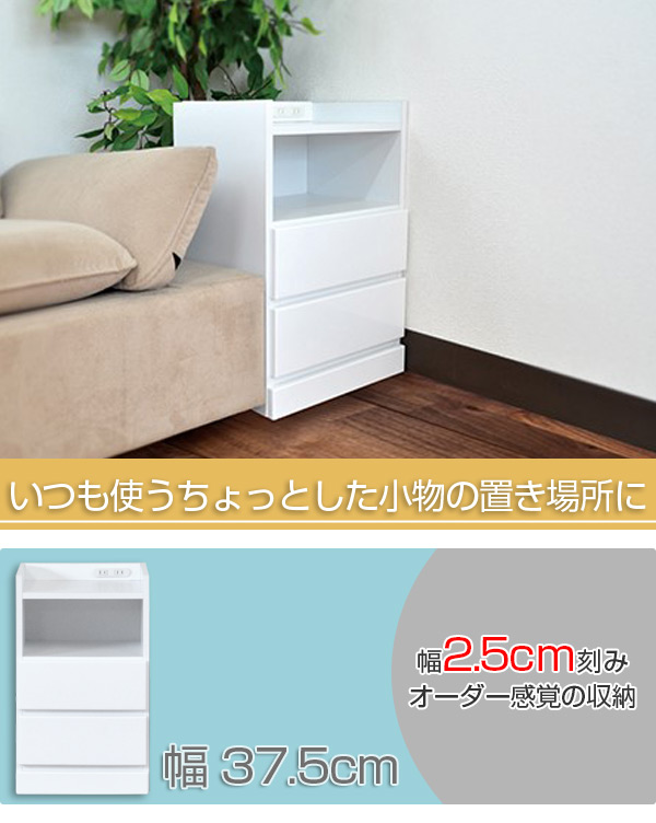すき間収納 サイドチェスト 3段 木製 コンセント付 37.5cm ( ナイトテーブル サイドテーブル テーブル チェスト ローチェスト 完成品 日本製 国産 木製 収納 リビング収納 電話台 FAX台 小物収納 白 茶 引出し 引き出し )