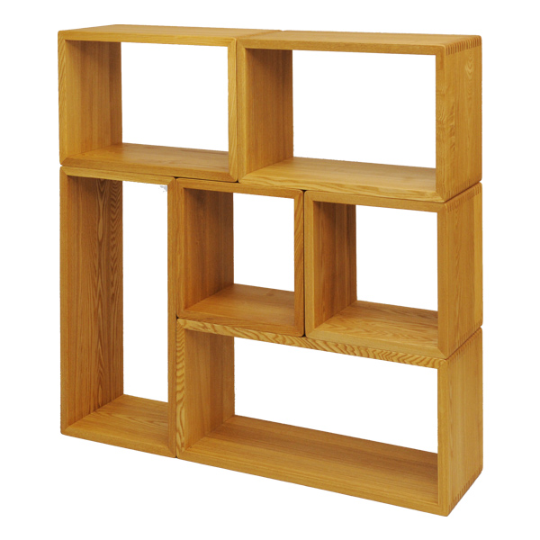 木目の美しいナラ無垢材ををロッキング構造でかたくて、丈夫に仕上げたボックスフリーラック。2本1組のボックスの組み合わせは自由自在です。