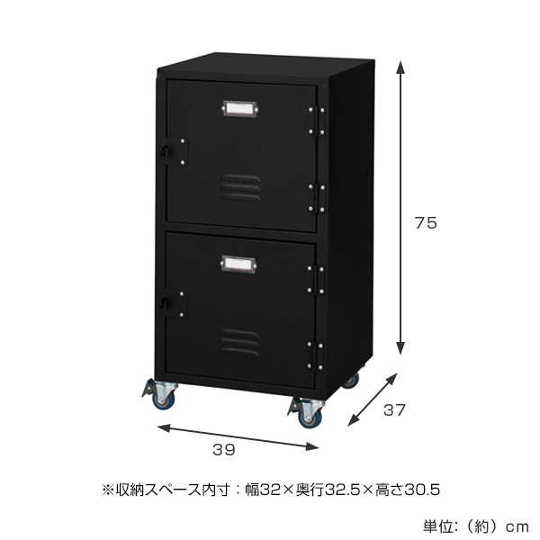 スチールラック 幅39cm 2段 扉付 ロッカー風 キャスター付 RALD ( キャビネット チェスト 棚 収納 スチール キャスター 扉付き 本棚 収納棚 シェルフ ラック スチールワゴン )