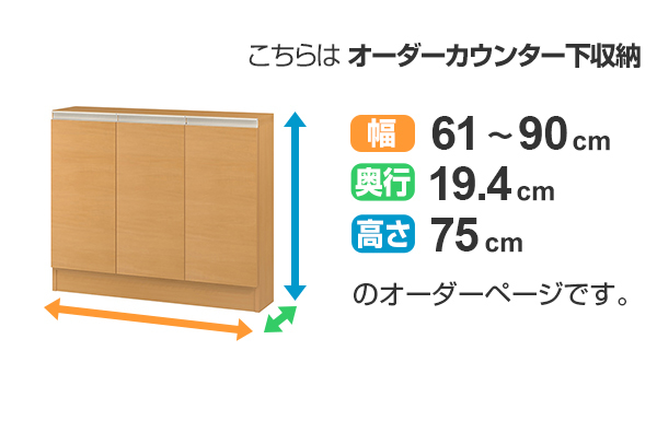 カウンター下収納 幅オーダー 扉付 スリムタイプ 高さ75cm 幅61〜90cm ( 収納 キッチン収納 キャビネット 窓下収納 リビングボード 収納棚 食器棚 収納家具 薄型 可動棚 開き戸 セミオーダー 日本製 )