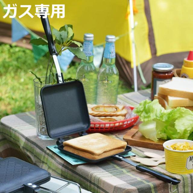 ホットサンドメーカー あつあつホットサンド フッ素加工 お手入れ簡単 ( ガス火専用 フライパン ホットサンド 調理器具 調理用品 キッチン用品 キッチン雑貨 アウトドア キャンプ キッチン小物 便利グッズ 両面焼き )