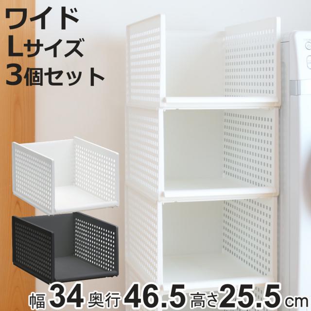 収納トレー ワイド L プラスチック 洗面台下 収納 日本製 同色3個セット ( トレー シンク下 幅34 奥行47 高さ26 収納ケース 卓上 キッチン クローゼット収納 洗面台 整理 積み重ね スタッキング トレイ タイプ 押入れ収納 )
