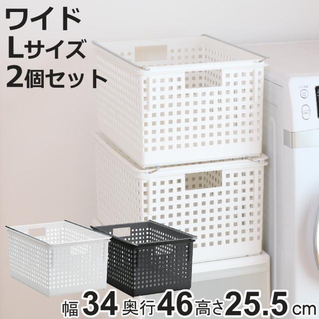 収納バスケット ワイド L プラスチック バスケット 収納 日本製 同色2個セット ( 収納ボックス 幅34 奥行46 ボックス 高さ26 かご カゴ 洗面所 キッチン おもちゃ箱 ストッカー スタッキング クローゼット収納 押入れ収納 )