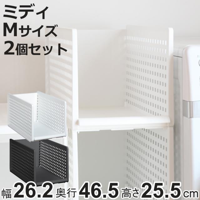 収納トレー ミディ プラスチック 洗面台下 収納 日本製 同色2個セット ( トレー シンク下 幅27 奥行47 高さ26 収納ケース 隙間収納 ケース ボックス 縦 前開き キッチン 洗面台 シンク 下 整理 積み重ね トレイ クローゼット収納 )