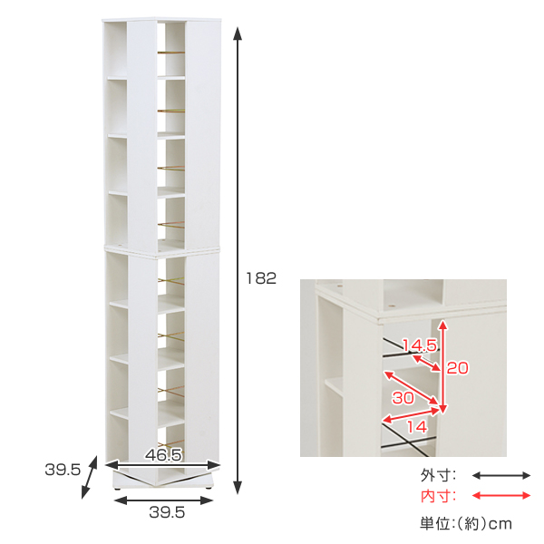 回転式 コミックラック 高さ182cm 8段 ブックシェルフ ( 本棚 ラック 回転 大容量 スリム 収納 シェルフ ブックラック 整理 おしゃれ シンプル ナチュラル ホワイト ブラウン )