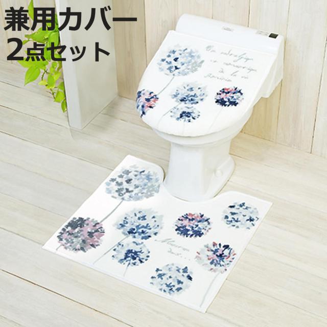 トイレマット フタカバー セット ラネージュ 洋式2点セット 兼用 ( トイレ マット ふたカバー トイレふたカバー 蓋カバー 洗浄 暖房 普通 2点セット トイレセット 洗える 滑り止め 55×60 長さ55 幅60 2点 トイレ用品 )