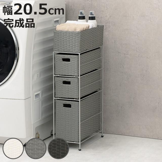 ランドリーチェスト 幅20.5cm 3段 スリムタイプ 引出し 隙間収納 完成品 ( ラタン調 ランドリー チェスト ラック 防水 撥水 収納 ラタン風 洗濯 ランドリーラック 樹脂製 すき間 編みかご )