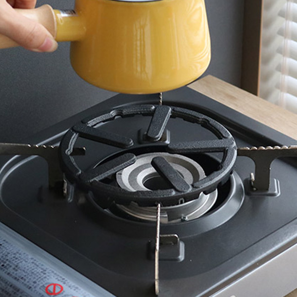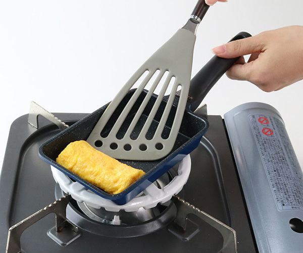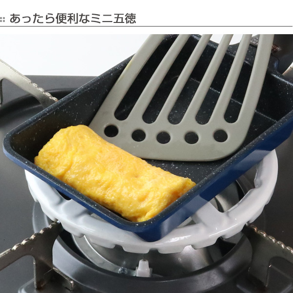 小さい玉子焼き器はとっても便利だけど、調理中のぐらつきが気になるという方にオススメのミニ五徳です。使い方は簡単。ガスコンロの五徳にはめるだけで玉子焼き器が安定します。
