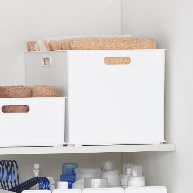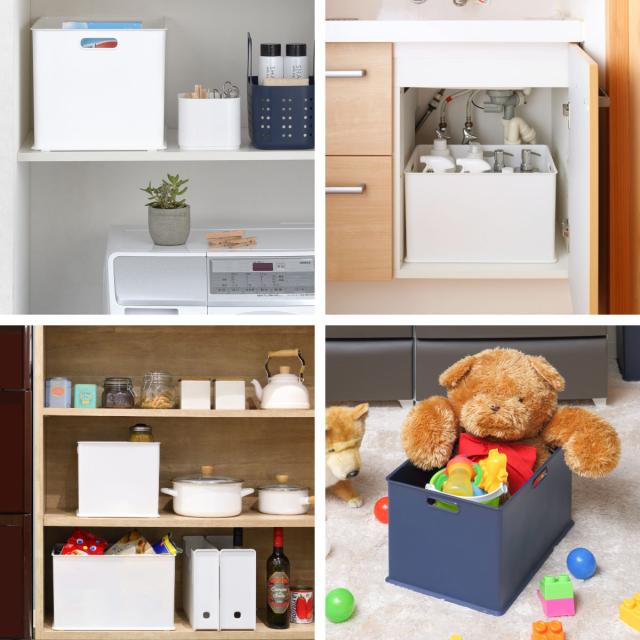 収納物や収納場所に合わせて使いやすいスクエア型。デッドスペースを作らず綺麗に並べることができます。また、カラーボックスにぴったり収まるサイズで便利です。
