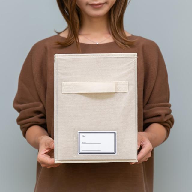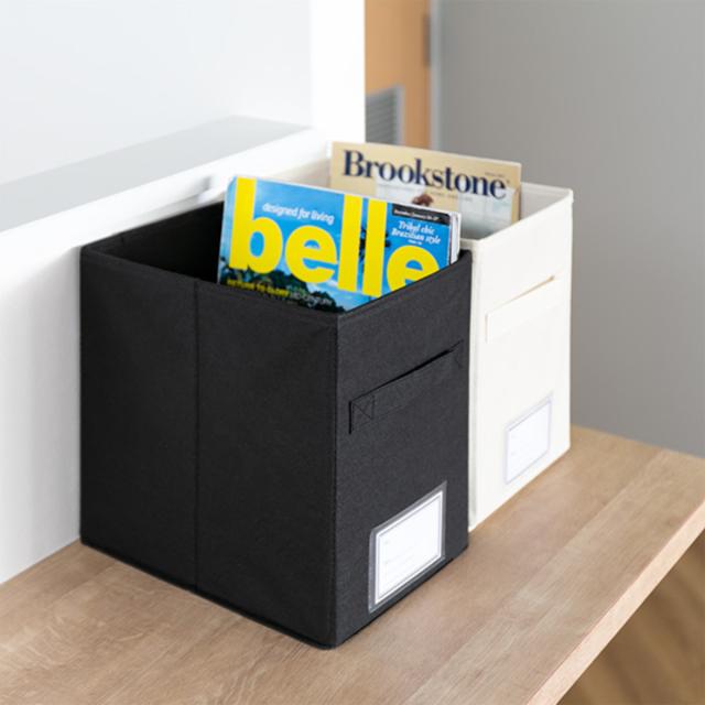 カラーボックス1段に2個収まる、見出し付き収納ボックス