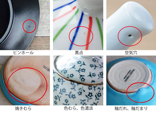 原料や製造方法により、上記のような特性がみられる場合があります。ひとつひとつのうつわの持つ個性、温かみある風合いとしてお楽しみいただければ幸いです。