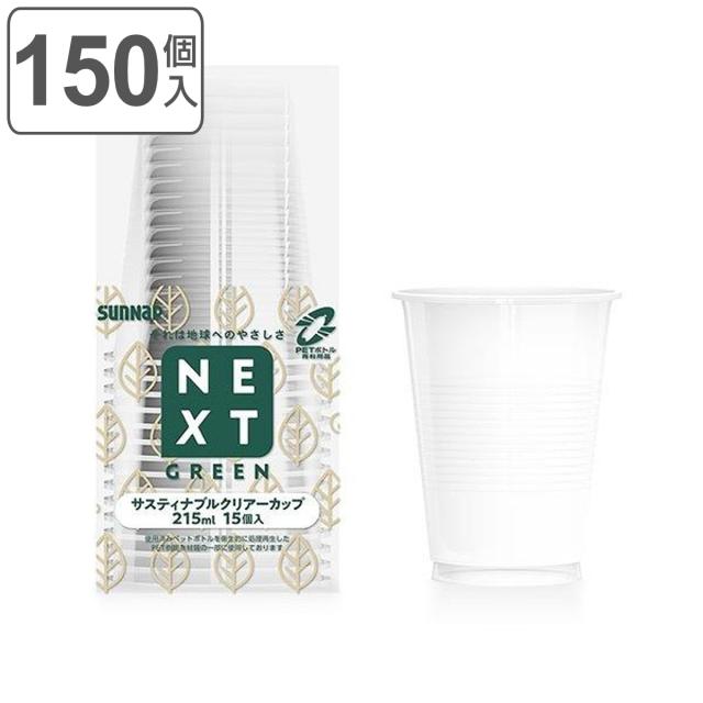 クリアカップ 使い捨て 215ml 150個入 15個入×10セット NEXTGREEN サスティナブルクリアーカップ ( サスティナブル コップ カップ セット 150個 使い捨てコップ ペーパーコップ ペーパーカップ シンプル )
