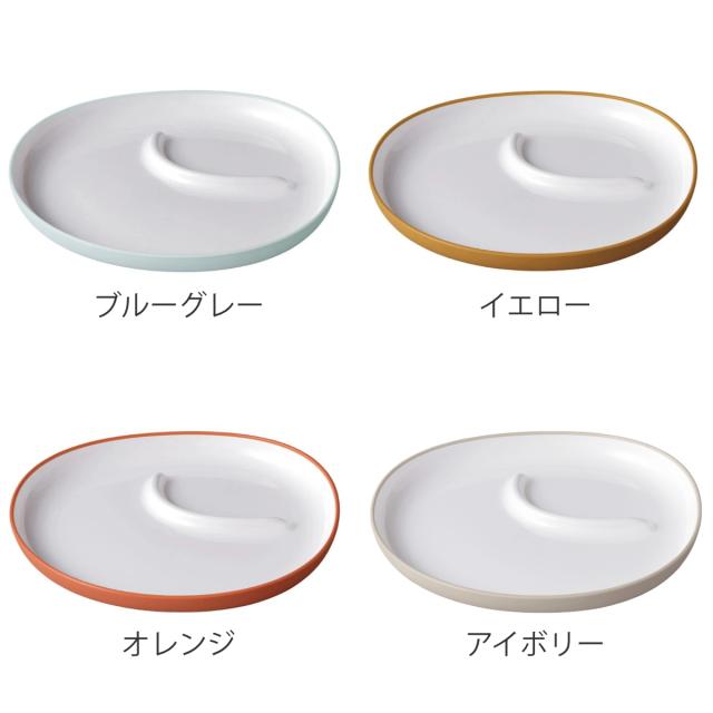 プレートの内側はスプーンで食べ物をすくいやすい形状です。お子様の「自分で食べたい!」という気持ちに寄り添うデザインです。