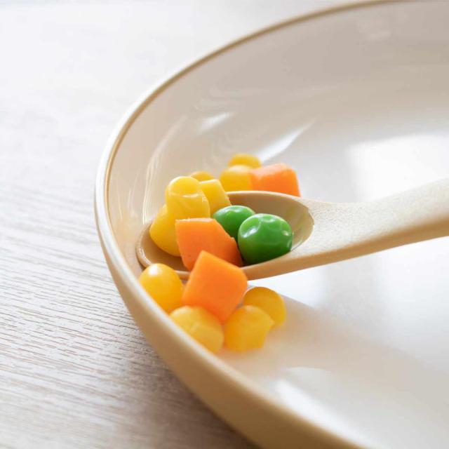 プレートの内側には返しがあり、斜めになっているので、スプーンなどで食べ物をすくいやすく上手に食べられます。