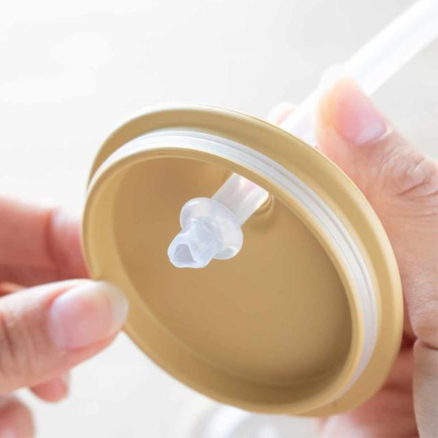 ストローカップのストローには抜け止めのストッパーがついているのでお子さまが引っ張っても抜けません。