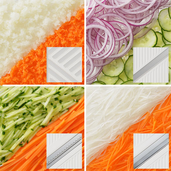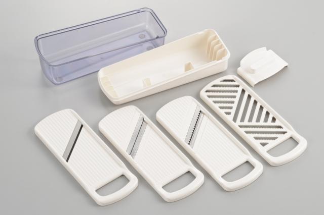 おろし用・スライス用・つま切り用・千切り用のおろし器とスライサーがセットになったデイリースライサーです。包丁よりもきれいな仕上がりで、毎日の調理をスピーディーに効率良くするサポートをしてくれます。