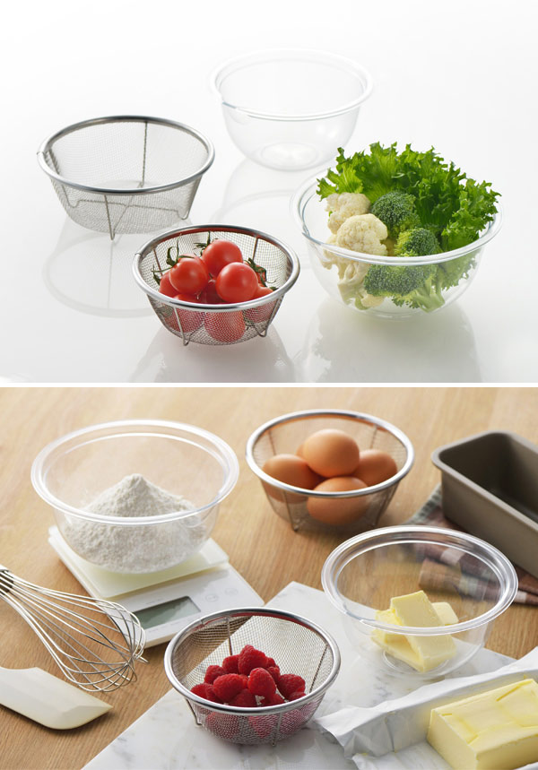 クリアボウル(大:直径17cm、小:直径13cm)ザル(大:直径15cm、小:13cm)の用途に合わせて使いやすいサイズのセットです。