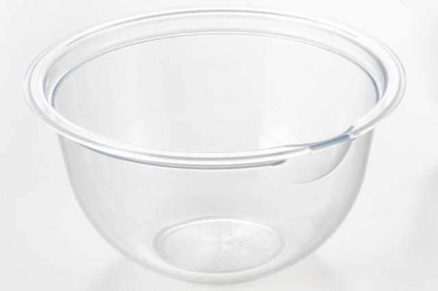 レンジ対応のクリアボウルは耐熱性に優れたポリメチルペンテンを使用しています。注ぎ口も付いているので、液体も注ぎやすいです。