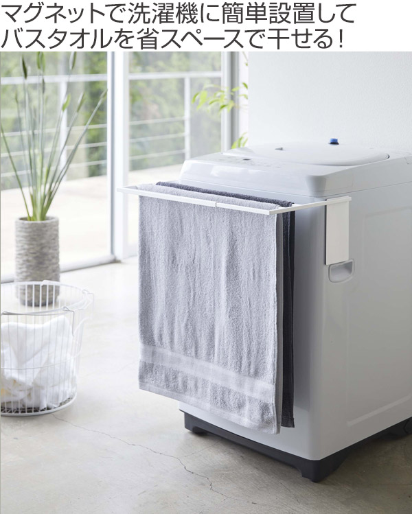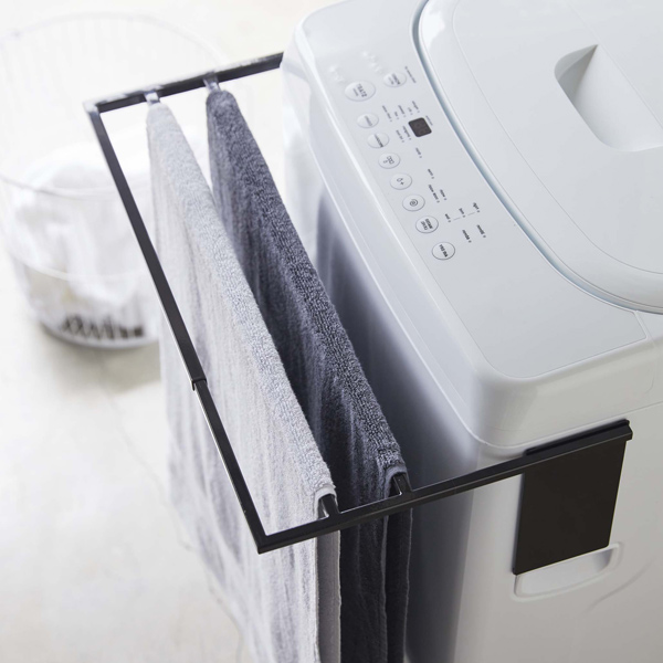 洗濯機にマグネットで簡単設置!バスタオルを省スペースで干せる