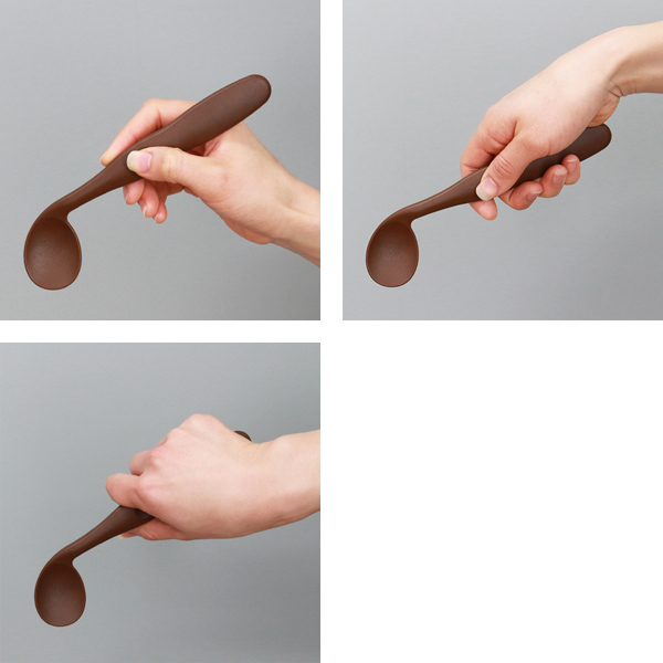 ヘッドのカーブが手首、腕の動きをサポートするカーブ設計で、手首が曲がりにくくて普通のスプーンやフォークが使いにくい方でも食べやすくなっています。