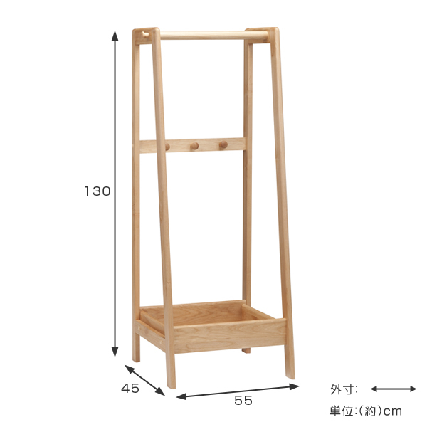 ハンガーラック ナチュラルテイスト アルダー材 Tiny2 幅55cm ( 開梱設置 コートハンガー 衣類収納 洋服掛け コート掛け 木製 収納 ナチュラル 収納ラック ハンガー ラック シンプル 収納棚 棚付き 55 幅55 55cm 55センチ )