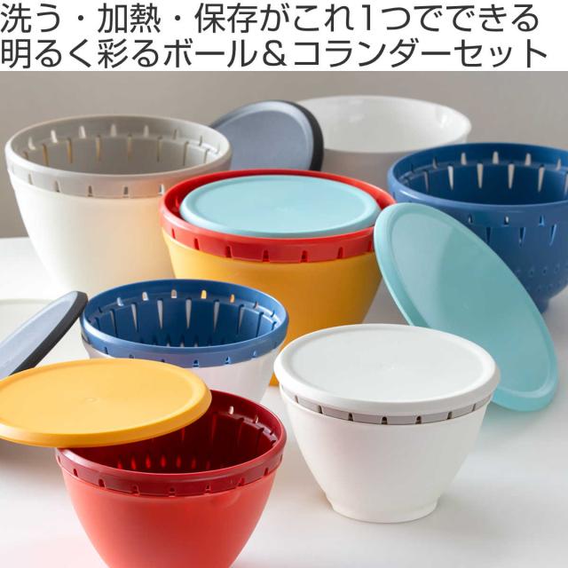 ザル・ボール 3点セット Sサイズ リベラリスタ ボールコランダーセットS フタ付き ( 食洗機対応 電子レンジ対応 ボウル ザル コランダー 耐熱ボウル ボール ざる 水切りザル 水切り 湯切り 下ごしらえ 蓋付き ふた付き )