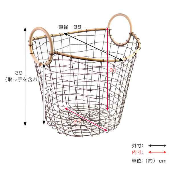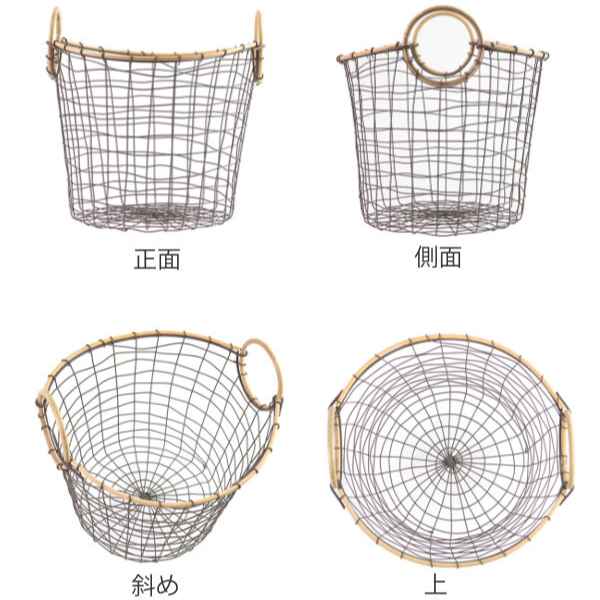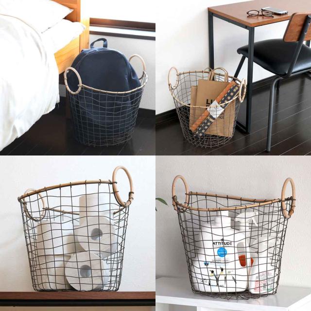 ワイヤーバスケット 籐のカゴ 直径38×高さ30cm ( バスケット ラタン 籐 小物収納 ワイヤー 収納バスケット 収納 収納ボックス ワイヤー収納 かご 収納ケース 持ち手付き 取っ手付き 小物入れ おしゃれ )