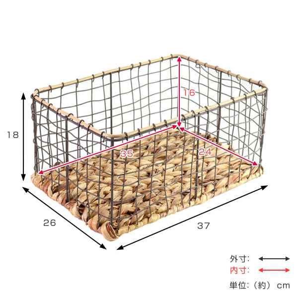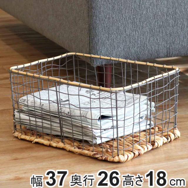 ワイヤーバスケット 籐のカゴ 幅37×奥行26×高さ18cm ( バスケット ラタン 籐 小物収納 ワイヤー 収納バスケット 収納 収納ボックス ワイヤー収納 かご 収納ケース 小物入れ おしゃれ )