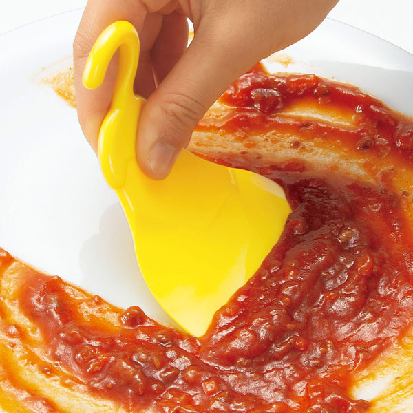 料理にタレやクリームをかける時に、スクレーパーがあるとキレイ取ることが出来ます。