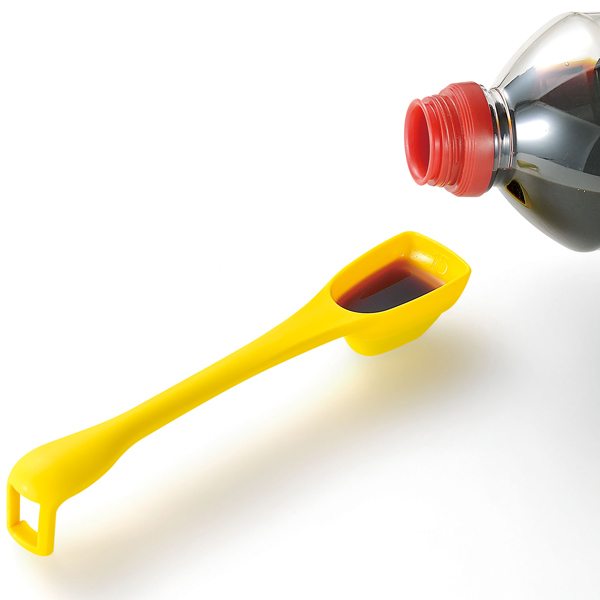 スプーンが自立するので、調理台にスプーンを置きながら調味料を注げます。