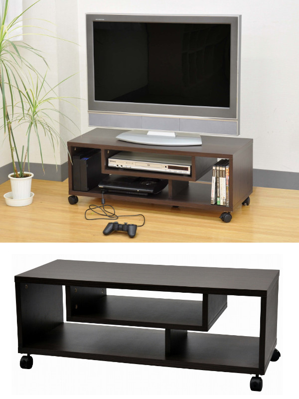中央のスペースには、AV機器などを収納、両サイドのスペースには、DVDなどが収納できます。背板が無いタイプのラックなので、配線なども裏面から出せて、簡単に設置できます。