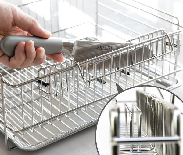 ●水切りバスケットと組み合わせて包丁を安全に水切りできます。