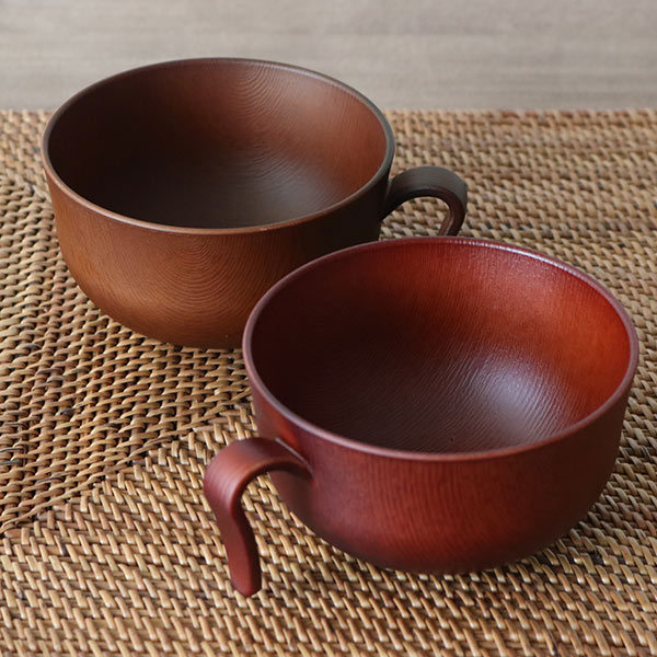 色々な食卓シーンで使える、ナチュラルな木目の持ち手付き汁椀