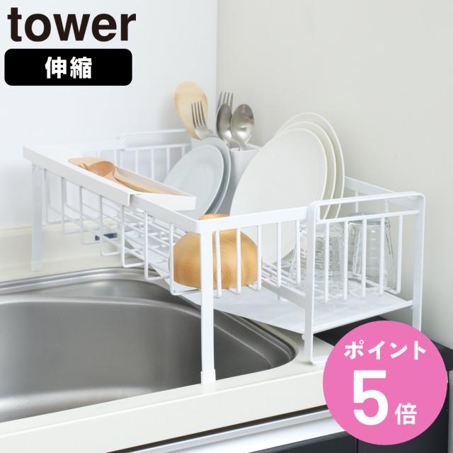 山崎実業 tower 水切りラック スペース広がる 伸縮 1段 スチール タワー ( タワーシリーズ 水切りカゴ 水切り 大容量 コンパクト 水切りかご 水切りバスケット 折りたたみ シンク上 スリム シンク横 )
