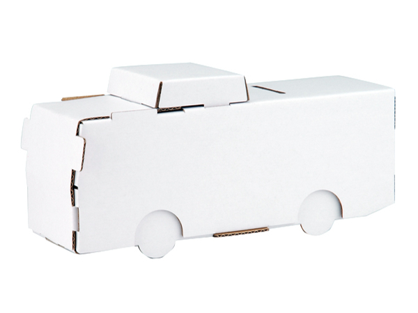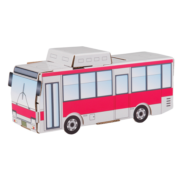 ●人にも自然にも優しいダンボール素材の工作キット「hacomo」ぺったんシリーズのバスです。