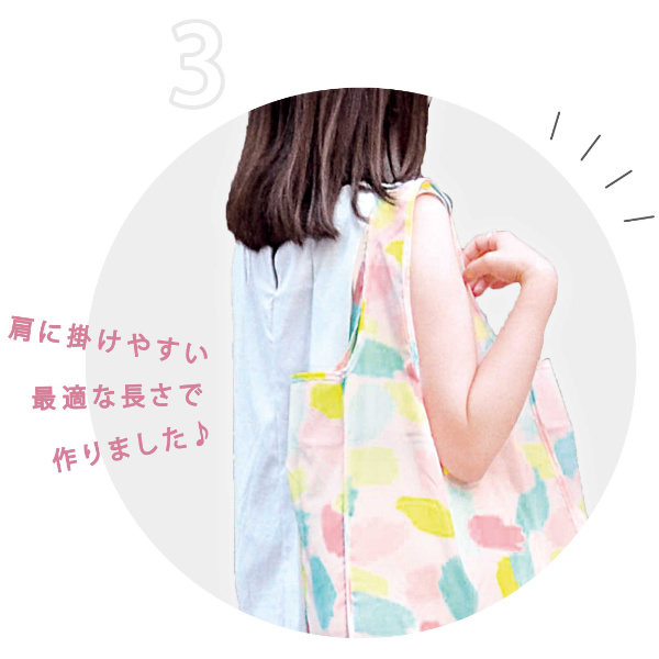 肩にかけやすい長さに作られているから、いっぱい入れても楽に持ち運べます。また、肩にかけることで手が空くので毎日のお買い物に便利です。