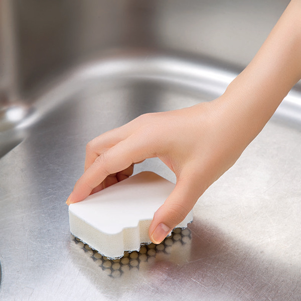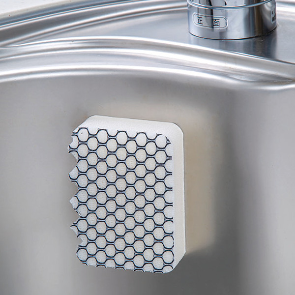 排水口まわりや細かい段差を洗えるギザギザ形状のシンク用スポンジです。汚れを連続的に落とすことができる立体メッシュ面にはフッ素加工が施されています。清掃後のシンクをフッ素で汚れ予防することができ、キレイが長持ちします。シンク内側だけでなく、水栓まわり、水切りカゴなどにもお使いいただけます。