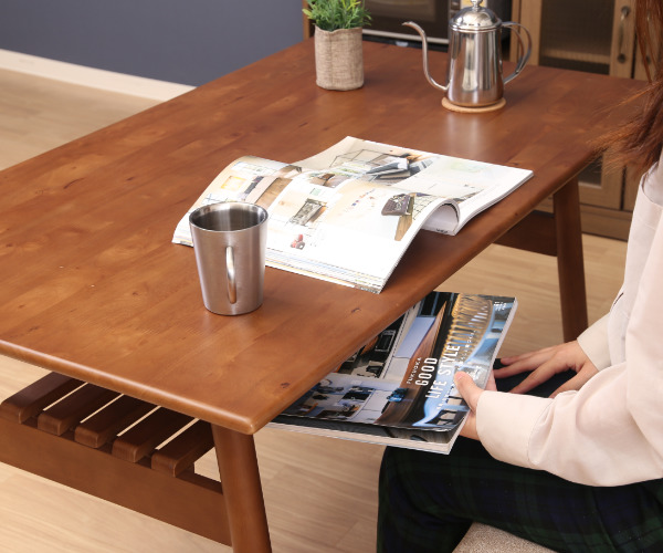天板下に棚があるため新聞や雑誌、テッシュケースなど小物を置く事ができ整理整頓が出来ます。