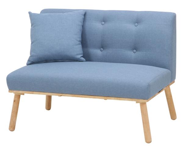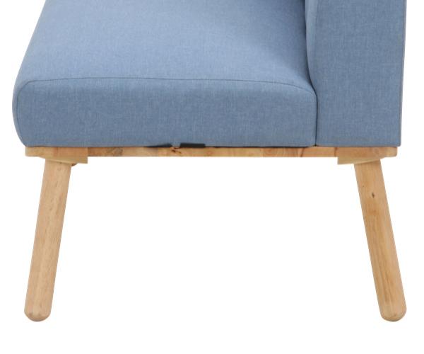 ファブリック素材と天然木のラバーウッド材を使用した二人掛け用ソファです。美しい木目の風合いがナチュラルテイストな空間を演出し、北欧風の色合いがお部屋をパっと明るくしてくれます。