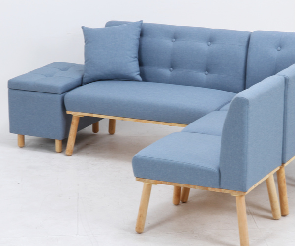 天然木の温かみとお部屋を彩るファブリックカラーソファ